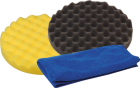 Praktisk sett med rubbingrondell, poleringsvoksrondell og mikrofiberklut. Alt du trenger for en vellykket polering. Settet kommer i ulike diametere for å passe til de aller fleste poleringsmaskiner.